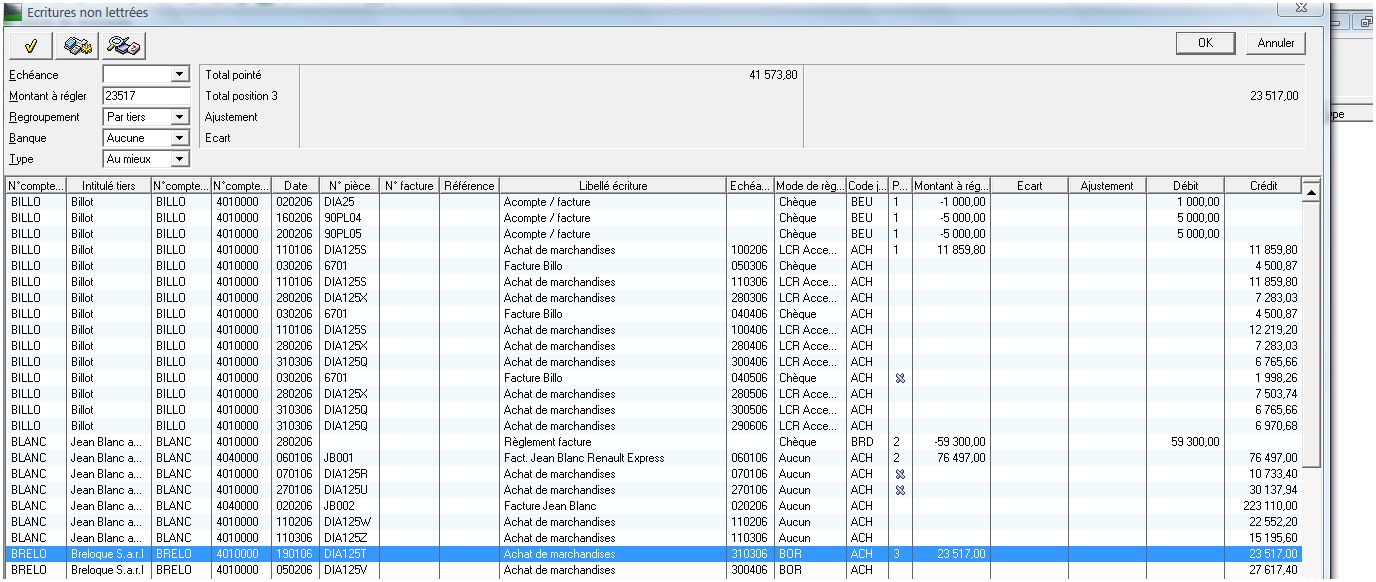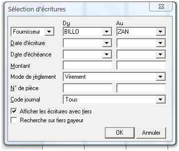 Associé à SAGE Comptabilité 30 et 100, SAGE Moyens de paiement vous évite la ressaisie des données. Par la sélection des écritures non lettrées dans SAGE Comptabilité, vous "sélectionnez" les factures concernées par votre règlement. Vous évitez ainsi la ressaisie de votre compte tiers, vous vous épargnez le calcul du montant réglé. Les RIB et adresses sont issus du plan comptable Tiers. Les numéros de factures et leurs montants proviennent des journaux dans lesquelles ces pièces ont été saisies. Vous pouvez ainsi lier à votre règlement une lettre d'accompagnement automatisée décrivant le détail des factures concernées.